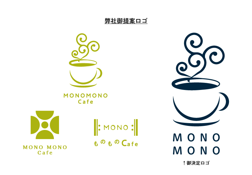 ブランディングロゴは「働いている会社員さん、お買い物の休憩etc…『ホッ』とできる空間のカフェにしたい」「幸せをつなげていくような…」などのコンセプトのお話しを元に制作いたしました。